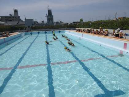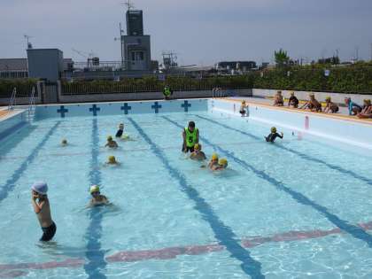 体育科の水あそびの学習が始まりました。今週は水慣れ週間のため、低水位で取り組んでいます。久しぶりのプールでワクワクとドキドキがいっぱいの様子でした。お互いに水をかけあったり、プールの中で元気いっぱいに走ったり、「アヒル」や「わに」などの動物になりきったりしました。特に動物になりきる場面では「クワッ、クワッ」、「ケロケロ」など鳴き声も真似をしながら体を動かしている姿も見られ、楽しい時間を過ごすことができました。