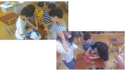 先日、道徳の学習の時間で「ふろしき」を題材にしたお話を読みました。そこでは、ふろしきの歴史や様々なものを包む方法について知りました。学習の最後には、「家にふろしきがあるか聞いてみよう!」「家の人がふろしきの包み方を習っているよ!」という話が聞かれました。その翌日にはお家の方と相談して、みんなに紹介するためにふろしきを持参する人や包み方を覚えてきて紹介する人の姿もありました。学習したことをその時間で終わりにするのではなく、さらに一歩進めて探究しようとする姿が素敵でした。