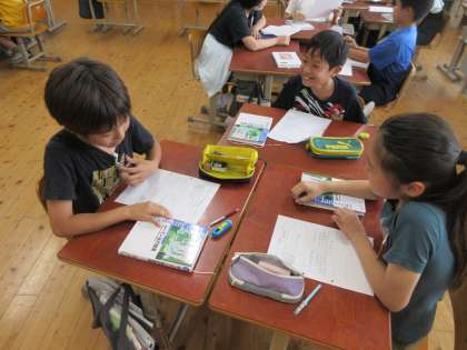 今日は、今まで読み進めてきた本について、読みの観点に沿って、交流をしました。