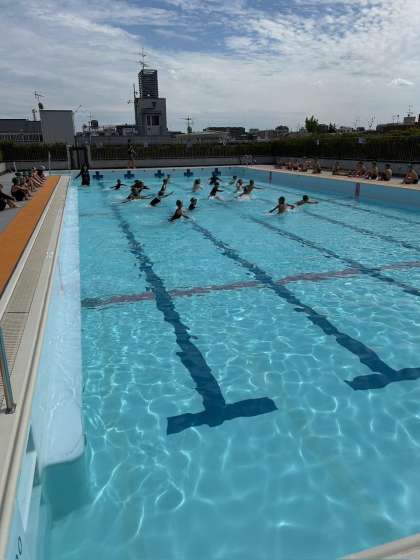 いよいよ梅雨本番を迎え、毎日蒸し暑く、本格的な夏を迎えるとどうなるのだろうと感じてしまう日々が続いている中、子どもたちが楽しみにしているのはなんと言っても水泳運動です。体育科の水泳運動では、まず浮く動きや潜る動きなどで水慣れを行い、そこから伏し浮き、けのび、バタ足、腰かけキックなどを行い、より長く浮く・潜ることや新しい泳法ができるように取り組んでいます。25mコースにも積極的にチャレンジし、がんばればできそうな泳ぎ方に取り組んでいます。子どもたちの様子を見ていると、とても気持ちよさそうに泳いでいます。自分のめあてに挑戦し、夏本番に向けて体力もしっかりつけていってほしいです。