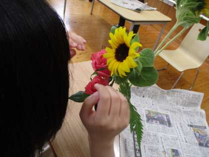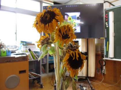生け花作品として玄関に掲示した後も教室で観察してきました。