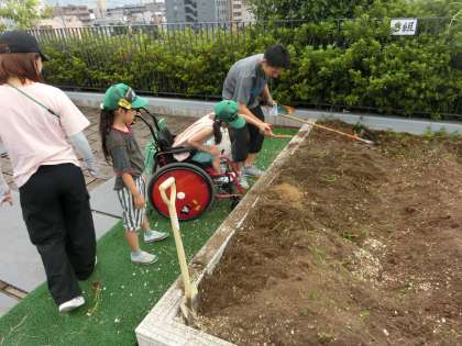 屋上にある畑の土づくりをしました。