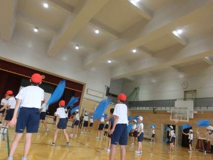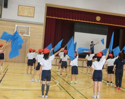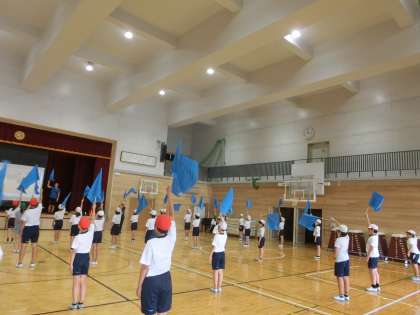 フラッグ 公開日 2024/09/15 更新日 2024/09/15 6年生 6年生 きずなスポーツフェスティバルで披露する フラッグを使って演技の練習を始めました。 フラッグをふったときに出る音の迫力に 子どもたち自身、驚いていました。 フラッグを使った演技。 心を一つにした素晴らし演技になるよう 取り組んでいきたいと思います。
