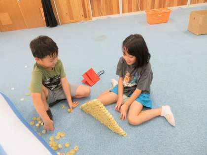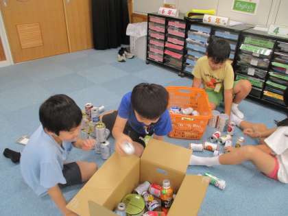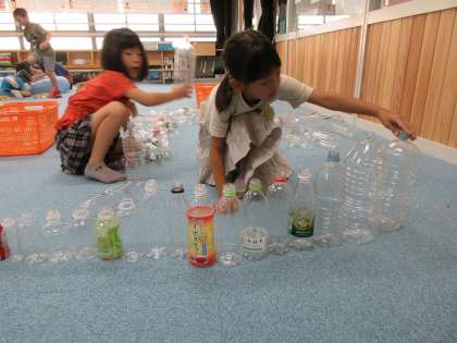 生活科「あそんでためしてくふうして」の学習では、先週に引き続き、それぞれの素材のよさを探るためにいろいろな遊び方にチャレンジしています。工夫して遊ぶことを繰り返し行う中で「芯は太いものと細いものがあるな」「倒れやすいものと倒れにくいものがあったよ」「筒状の箱はドミノ倒しができなかった」など、たくさんの気付きを集めることができました。