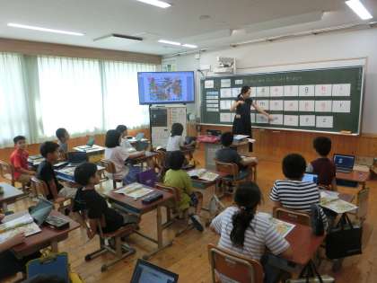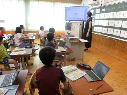 教室から、アルファベットを歌う、