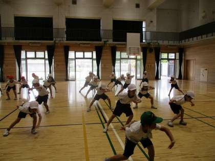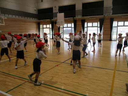 きずなスポーツフェスティバル向けて練習中(2年) 公開日 2024/10/06 更新日 2024/10/06 2年生 きずなスポーツフェスティバルで披露するダンスの練習風景です。指先まで伸ばすことや音楽とタイミングを合わせることなど、子どもたちが実際に踊ってみて感じたことや動画を見て気付いたことを交流しながら、よりかっこいいダンスになるよう練習を重ねています。
