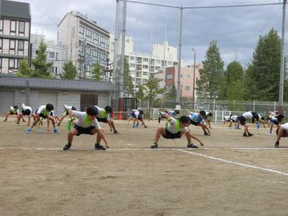 見てください、この低い姿勢! この指先! 5年生の本気が伝わってきます。 この真剣なダンスから次はチーム紹介へ。