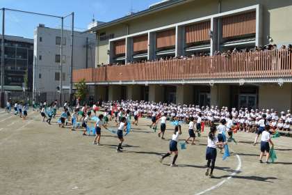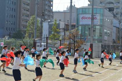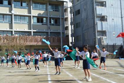 11日(金)に無事きずなスポーツフェスティバルを終えることができました。秋晴れの気持ちのよい天候の中、これまで練習してきた演技を力いっぱい表現することができました。本番に向けてダンス振付けや隊形移動だけでなく、みんなで相談しながら掛け声や歌を口ずさみながら踊るなど、どんどんレベルアップさせることができました。当日はトップバッターということもあり少し緊張もありましたが、観客の皆様のご協力もあり、盛り上がった雰囲気の中、思い切り楽しく体を大きく使ってダンスすることができていました。その他にもさまざまな競技を通して子どもたちの一生懸命頑張る姿を見ていただけたかと思います。全校で共に取り組むことで上級生へのあこがれを感じ、来年は自分たちもやってみたいという意欲が出たようです。たくさんの応援ありがとうございました。