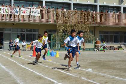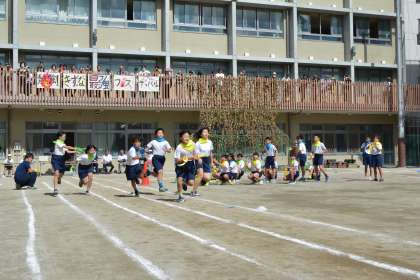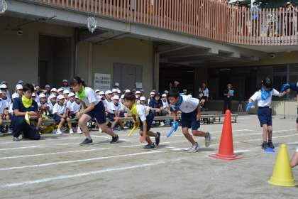 表現運動の後は、全員リレーです。