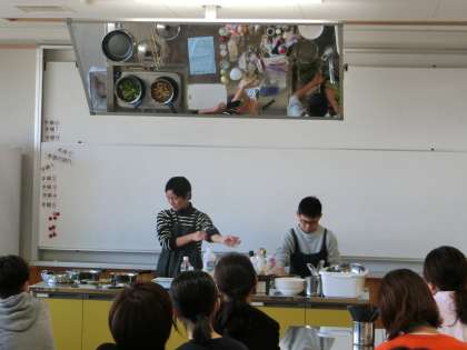今回は〜簡単に作れる野菜たっぷり作り置きレシピ〜と題して、プロの料理人の講師の先生に、実際に調理してもらい、試食をしました。