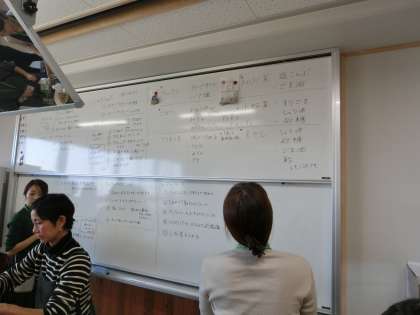 一緒に試食しながら、また最後にホワイトボードに残ったレシピを見ながら、みなさんで交流する姿が、とても印象的でした。講義形式もいいですが、このように会員のつながりがみられる家庭教育講座も有意義だと感じます。