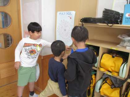 直角どこだ?(2年) 公開日 2024/11/12 更新日 2024/11/12 2年生 算数科の「三角形と四角形」の学習で、折り紙を使って「直角」の形を作りました。その形を使って教室の中にある「直角」を探しました。子どもたちは「窓のはしっこも直角だ!」「もしかしてロッカーも・・・」とさまざまな場所から見つけていました。中には「そこに目を付けるとは!」とみんなから一目置かれている子もいました。楽しみながらも一生懸命に探している姿が微笑ましかったです。