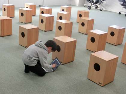 図画工作の時間です。子どもたちタブレット端末をもって、