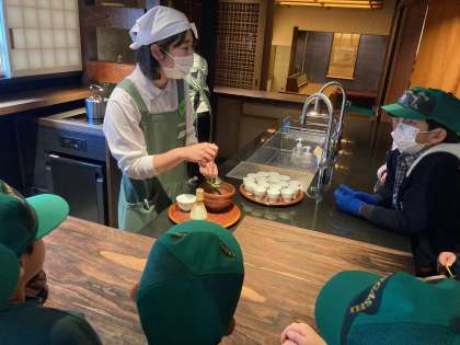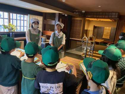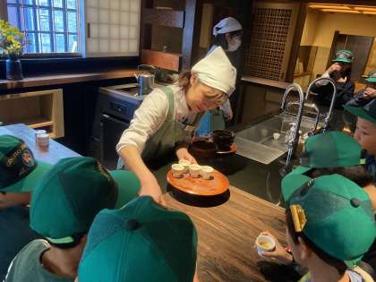 京都のよさを確かめに行こう2(3年) 公開日 2024/11/21 更新日 2024/11/21 3年生 一保堂さんでは、お茶やお店のことをたくさん教えていただきました。お店では日本茶を扱っているけれど、育て方や摘む時期が違うと香りや味が少しずつ変わることなどを教えていただきました。また、実際にお茶をたてて淹れていただいてよい香りや味を楽しみました。日本で昔から飲まれているお茶の文化を京都で大切にされていることを知って、子どもたちはそれが今にも残っていることにありがたみを感じていたようでした。