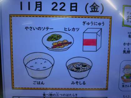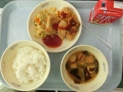 今日の給食 公開日 2024/11/22 更新日 2024/11/22 学校の様子 今日は、行事献立です。 ご飯、お味噌汁、ヒレカツ、野菜のソティ、牛乳です。 子どもたち、朝からヒレカツを早く食べたい…と 楽しみにしていました。 ヒレカツは、給食調理委員さんが、一つ一つ味付けをし、 衣をつけて、揚げています。とても大変です。 そのヒレカツにソースをつけて、子どもたち嬉しそうに 食べていました。ごはんがすすむ。