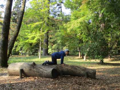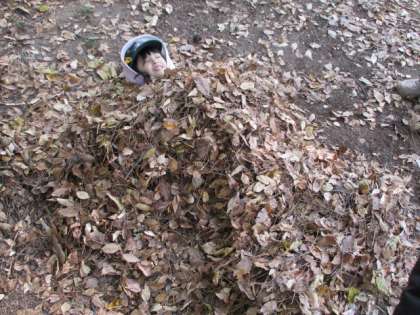 いろんな色の落ち葉を集めたり、落ち葉を踏みしめる音を楽しんだり、落ち葉でベッドを作って寝転んだり、倒木に耳を当て感触を楽しんだり、落ち葉のシャワーに見とれたり・・いろいろな方法で「秋」を感じることができました。