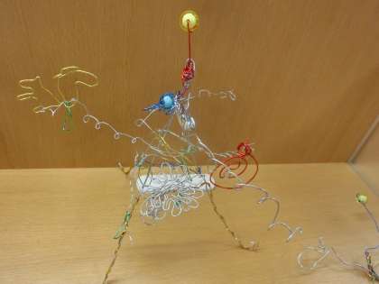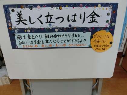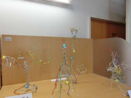 うつくしく立つ針金 公開日 2024/12/04 更新日 2024/12/04 5年生 5年生 図画工作「うつくしく立つ針金」 自分が表現したいイメージをうまく使って、 針金のかたちを変えたり、飾りをつけたりして 表現しました。 素敵な作品ができあがりました。