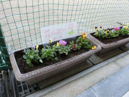 花いっぱい御所東2 公開日 2024/12/16 更新日 2024/12/16 学校の様子 12月14日に 御所東コミニティの「自然・環境部会」による 花いっぱい御所東が行われました。 プランターにお花を植えた後、プレートづくりを作り、 水やりをしました。 今日は、朝からお花が元気いっぱい。 登校してくる子どもたちを出迎えてくれました。