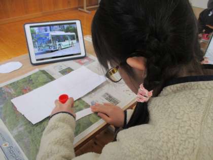 片方の手でハサミ、もう片方の手で画用紙を持ち、