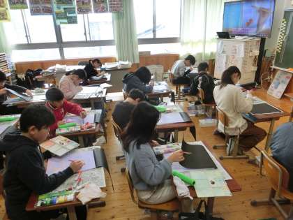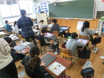 版画 公開日 2025/01/21 更新日 2025/01/21 5年生 5年生 楽器を演奏している自分をテーマに 版をつくってきました。 細かいところまで気を付けて彫り進めてきました。 出来上がった版に色を塗り、紙に写していきます。 それを繰り返して、完成です。 色の濃さ等によっても、仕上がりがかわります。 ぬっては刷り、ぬっては刷り・・・ ことどもたち楽しそうに活動していました。
