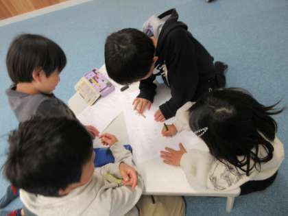 子ども達から「みらい表現発表会の招待状」は、届いたでしょうか。いよいよ、みらい表現発表会に向けての練習が始まりました。まずは、生活科の「もっともっとまちたんけん」の学習で、学んだことをどのように発表したいのか話し合いました。「御所東の町の自慢を伝えたい!」「いろいろなお店があることを知ってほしいな。」「クイズ形式で発表したら、聞いている人もたのしいんじゃないかな?」など、様々な意見をもとに、発表の形を決めました。