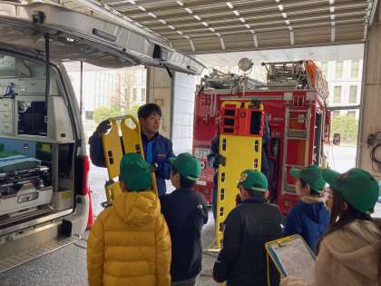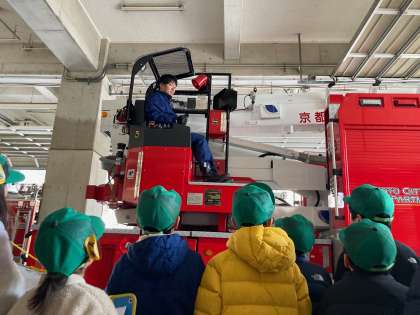 火事をふせぐために1(3年) 公開日 2025/01/31 更新日 2025/01/31 3年生 30日(木)の3・4校時に社会科「火事をふせぐ」の学習を進める中で、消防署ではどのような仕事が行われているのか、またどのような思いをもって仕事に取り組んでおられるのかなどの学習問題が立ちました。その学習問題を解決するべく、上京消防署の見学をしました。子どもたちは熱心に話を聞き、仕事内容や働き方、仕事への思いなどに興味を持ちながら学習することができました。