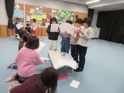 みらいひょうげん発表会が再来週に迫ってきています。それぞれが言うセリフも決まり、身振り手振りを考えたり、グループで練習したりなど、着々と準備が進められています。来週は全体で通して練習をする予定です。全員で力を合わせて本番まで走り抜けてほしいと思います。
