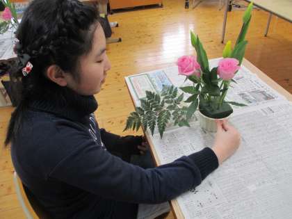 学期に一度の生け花体験学習を楽しみにしている子どもたちは、