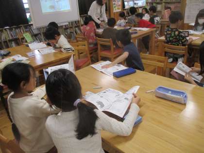 図書館たんけん 公開日 2025/04/17 更新日 2025/04/17 学校の様子 図書館オリエンテーションがありました。学校司書の川原先生に本の住所についてお話をしていただきました。また、読書ノートの使い方についても教えてもらいました。1ページずつめくりながら、友達とどんな本を読みたいのか話していました。 1年をかけて、たくさんの本に親しんでほしいと思います。