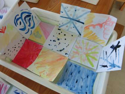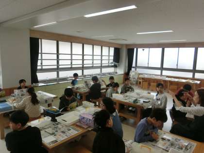 図画工作「心のもよう」を図工室で取り組んでいました。