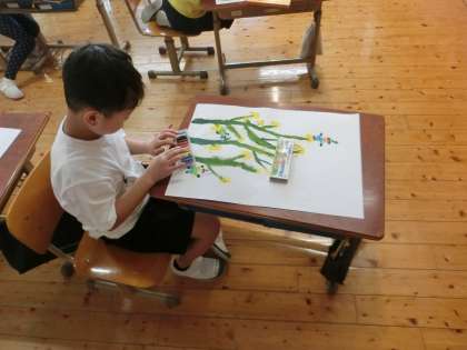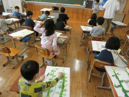 菜の花におもいをこめて 公開日 2025/04/17 更新日 2025/04/17 学校の様子 3年生 菜の花を描いています。 黄色い小さな花がかわいく、ながい茎も特徴的です。 その菜の花に、こびとをかきました。 かわいいこびとが、菜の花で楽しく過ごしています。
