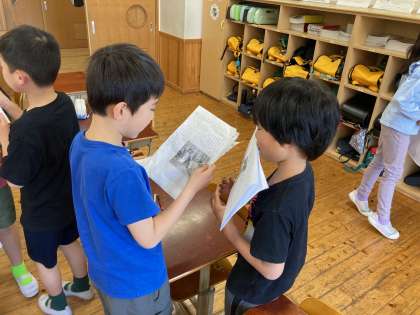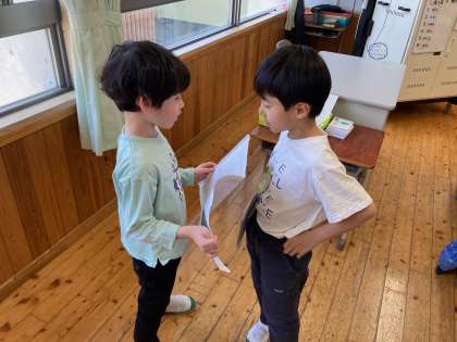 国語科「春風をたどって」では、物語の主人公であるルウの気持ちの変化を読み取ってきました。単元の後半には、ルウの住んでいる森への気持ちやもう一人の登場人物であるノノンへの気持ちが変化していく様子について考え、話し合いました。最初の場面の気持と比べながら考えることができ、「最初はこんな森なんて、いいとこ一つもないって思ってたルウだけど・・・」「ノノンのことはきらいではないけど、最初は苦手意識が少しあって・・・」など変化していく様子を分かりやすくつたえることができました。学習してきたものを書きためてきた「全文シート(教科書+ノート)」を活用して話し合ったり、中には自分の言葉だけでルウの気持ちの変化を話し合ったりする姿も見られました。