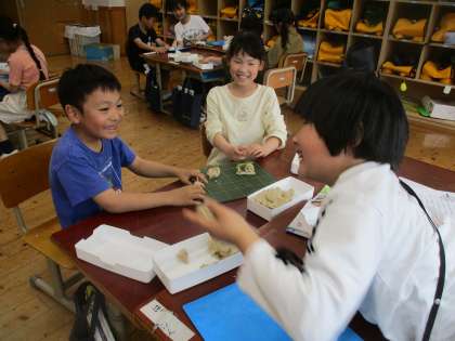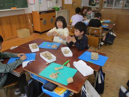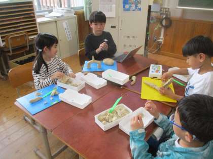 ねじって、丸めて、広げて・・・いろいろな「にぎにぎ」を組み合わせて、楽しそうに作品を作っていました。友達の作ったハンバーガーを見て「おいしそう!」や友達が作るのに困っている様子を見て「手伝ってあげるよ。」など素敵な声が聞こえてきました。