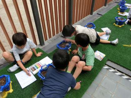芽が出た!(1年) 公開日 2025/05/21 更新日 2025/05/21 学校の様子 生活科で先週種を植えた朝顔が、今週に入り芽が出てきました。月曜日の朝に真っ先に植木鉢を確認しに行った子どもたちが「芽がもう出ている!」「4個も出ていた!」と教えてくれました。元気に育つ朝顔を見て、子どもたちの水やりにも気合いが入っているように思います。「早く花が咲かないかな」と成長を願ったり、「昨日よりも大きくなっている!」と日々の変化を楽しんだりする姿が見られました。