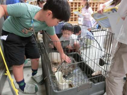 生活科の学習で、先週から学校にいるウサギさんのお世話を飼育委員会のお兄さん、お姉さんと一緒に頑張っています。お世話や観察をする中で、キャベツが大好物であることやチョコとミルクという名前があることなどの発見と同時に、「毛がたくさん抜けているのが心配」「チョコはすごく動くけど、ミルクは全然動かないのはなんでだろう」など気になることも出てきました。そこで、来週は獣医さんに来ていただき、気になっていることを質問してみることにしました。どんな学習になるのか楽しみにしている様子でした。