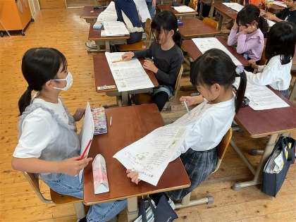 紙コップ花火を作りながら、「まず、次にという順序を表す言葉が大切だと思ったよ。」「1cmって言葉がないと、うまく作れなかったと思うよ。」など、説明のコツを自分たちで見つけることができました。