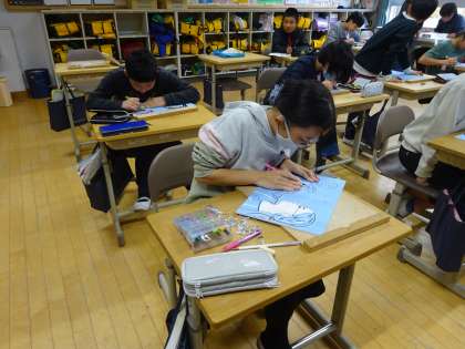 6年 図画工作 公開日 2025/11/27 更新日 2025/11/27 学校の様子 「6年生のわたし」という題材で、学校の思い出や楽しい場面を版画で表しています。白と黒の割合に気を付けながら掘り進めています。初めての面彫に挑戦です!