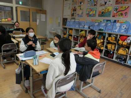 6年 GGTタイム 公開日 2025/11/20 更新日 2025/11/20 学校の様子 三小学校合同で読解の学習をしました。三校合同のグループに分かれ、このニュースは本当のことなのか、間違った情報なのかをクイズを通して、理由を考え、「正しい情報をつかむために大切なことは何なのか」を考えました。積極的に意見を出し合い、話し合う姿がたくさん見られました。