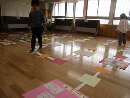 みんな大好き水泳学習、ドキドキしたけど頑張った合同運動会、毎週のように出かけた御所東の町探検、命について感じ、考えた“ぼくらはみんないきている”学習、困ったときにかけてくれた上級生の優しい言葉、大好きな先生や友達と離れてしまう時の寂しさ・・・すごろくを通して、嬉しかったことや悲しかったこと、様々なことが思い起こされました。