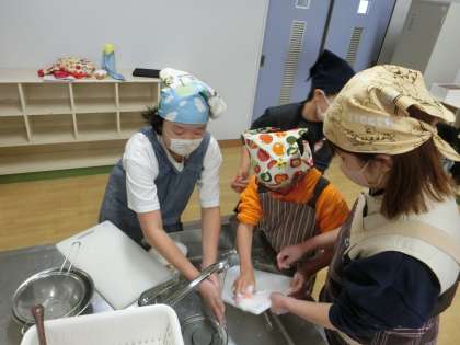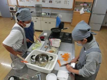 調理実習 公開日 2025/11/27 更新日 2025/11/27 学校の様子 6年生 調理実習をしました。 野菜や厚揚げを切ったり、いためたり・・・。 協力して調理をすることができました。 最後は、溶き卵と一緒に炒めて、完成!! おいしそうな 野菜と厚揚げのチャンプルーが出来上がりました。 片付けまで手際よくすることができました。