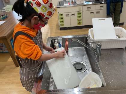 洗い物(鍋、まな板、ボウルなど)をしたり、