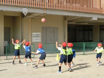 体育科「パスゲーム」の学習をしました。全8時間のこの単元ですが、回数を重ねるごとに、攻守の切り替えが早くなったり、相手のいない場所を見つけてパスをもらったりなど、レベルアップしていく様子が見られました。また、チームのメンバーと「細かくパスをつなごう」「合図を決めよう」など作戦を考える姿も見られ、チームワークも深まっていったようでした。