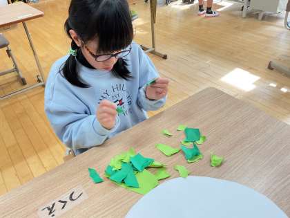 クリスマス会に向けて(3組) 公開日 2025/12/08 更新日 2025/12/08 学校の様子 6年6組では、中学校の育成学級のみんなと一緒にクリスマス会をしようと計画中です。 計画をしていく中で、小学生と中学生でプレゼント交換をしようという話になり、6組では、リースを作ることにしました。 紙を細かくちぎって貼ったり、折り紙でサンタクロースやトナカイを折ったり、子どもたちはクリスマス会が待ちきれない様子でうきうきと準備を進めています。