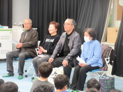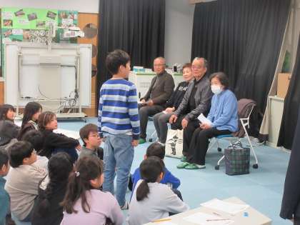 今週は、地域の4名の方に来ていただいて、子どもたちがもつ素朴な疑問に対して、とても丁寧に答えていただきました。それぞれの地域のまちの様子の変化や、小学生の頃の好きな遊びや得意だったことなど、いろいろな質問に対して答えていただきました。地域の人や周りの様子を知るとともに、これから地域の方とともに、何か一緒にできることはないかなどを、具体的に考えていくきっかけになる時間になりました。
