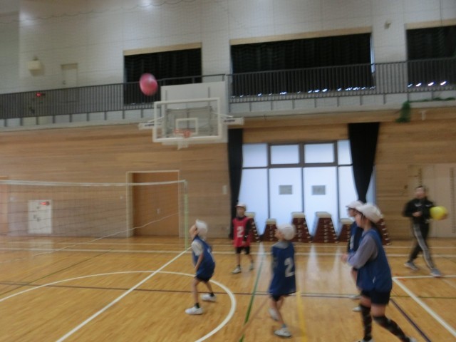 4年生 体育科の学習でソフトバレーボールを始めています。