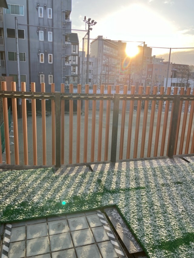 子どもたちが雪遊びをするほどには積もってはいませんでしが、