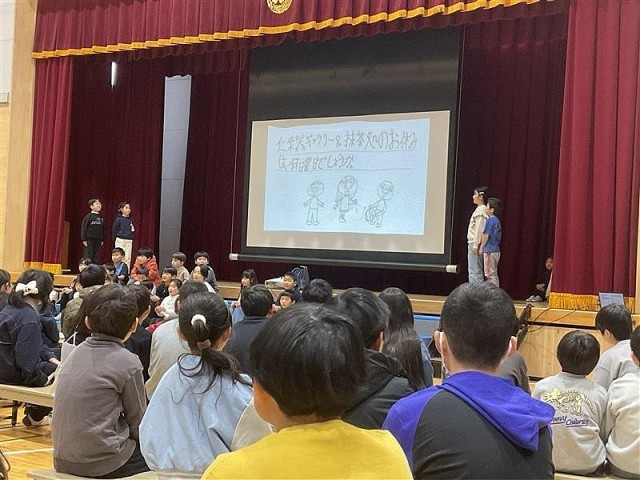 きずな表現発表会を無事に終えることができました。6学年ある中で、1番手を務めた2年生。緊張もある中で、とても大きな声で堂々とした発表をすることができました。一人一人が練習してきた成果を発揮することができました。教室に戻った子ども達は「大きな声で言えたよ!」「緊張したけど、頑張れてよかった!」と口々に言っていました。ステキな発表ができ、子ども達の自信にもつながったと思います。