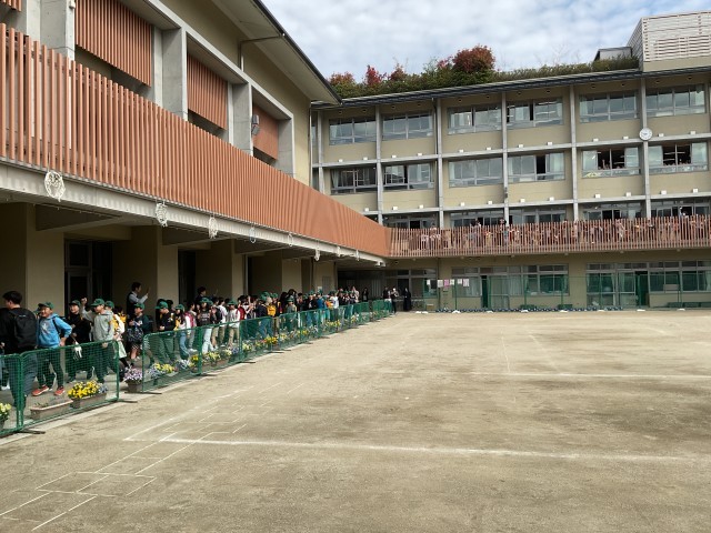 6年生が終発するときは、校舎の1~4年生も手を振って大きな声で見送りました。