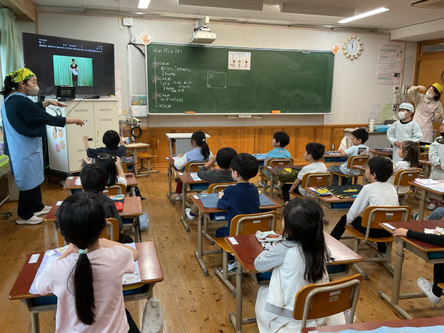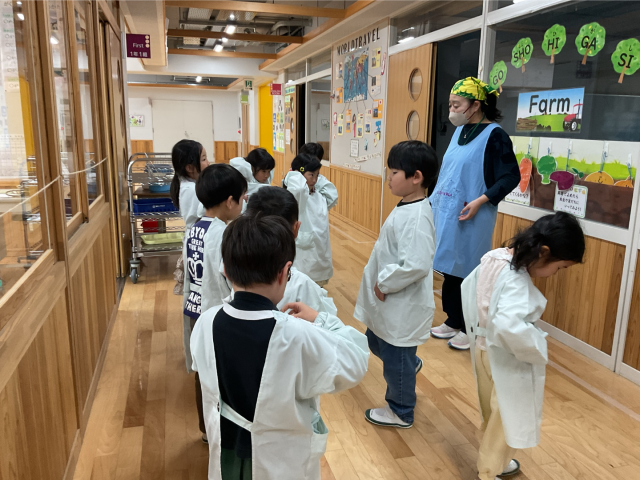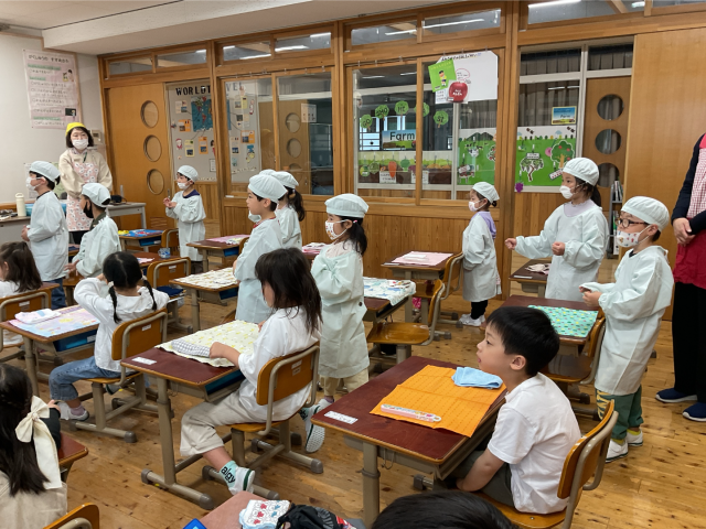 実際に給食の準備をする前に準備の仕方について担任の先生から説明を受けました。