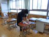 子どもたちが下校した後に,養護教諭の指導のもと,教室や多くの児童が手を触れる場所...